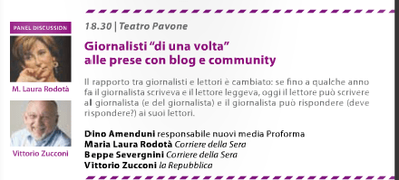 Domani pomeriggio (Perugia, Teatro Pavone, Festival Internazionale del Giornalismo, ore 18.30) modererò un confronto tra Beppe Severgnini, Vittorio Zucconi e Maria Laura Rodotà sul rapporto tra i giornalisti e i loro lettori più fedeli ai tempi di Internet.